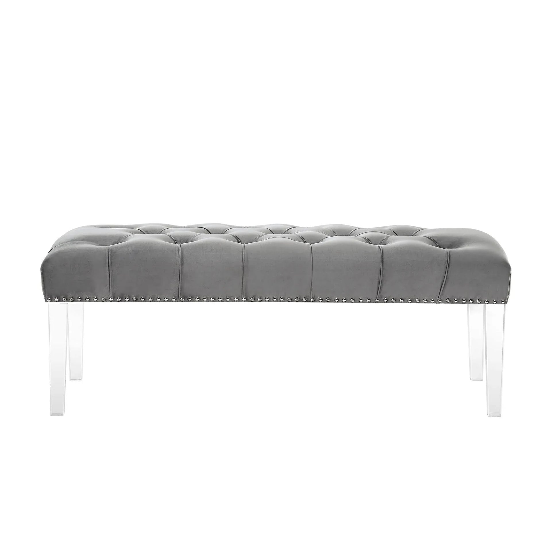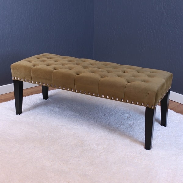 Add a touch of elegance to your space with the Silver Orchid Orla Velvet Bench. This button-tufted bench is available in different colors and features a durable wood construction upholstered with soft yet robust poly velvet fabric. The foam-filled cushion seating provides cozy support, and the straight wood legs have an espresso finish that adds to the bench's transitional style. Enjoy comfort and beauty with this bench that will last for years to come.