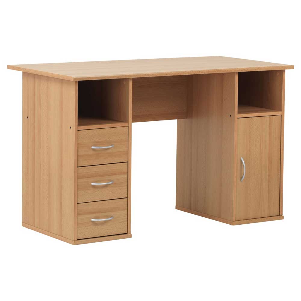 Featuring convenient shelves and drawers, the desk offers excellent organizational capabilities, keeping your supplies neatly stored and easily accessible. Its sleek and modern design seamlessly complements any decor, adding a touch of elegance to your workspace.